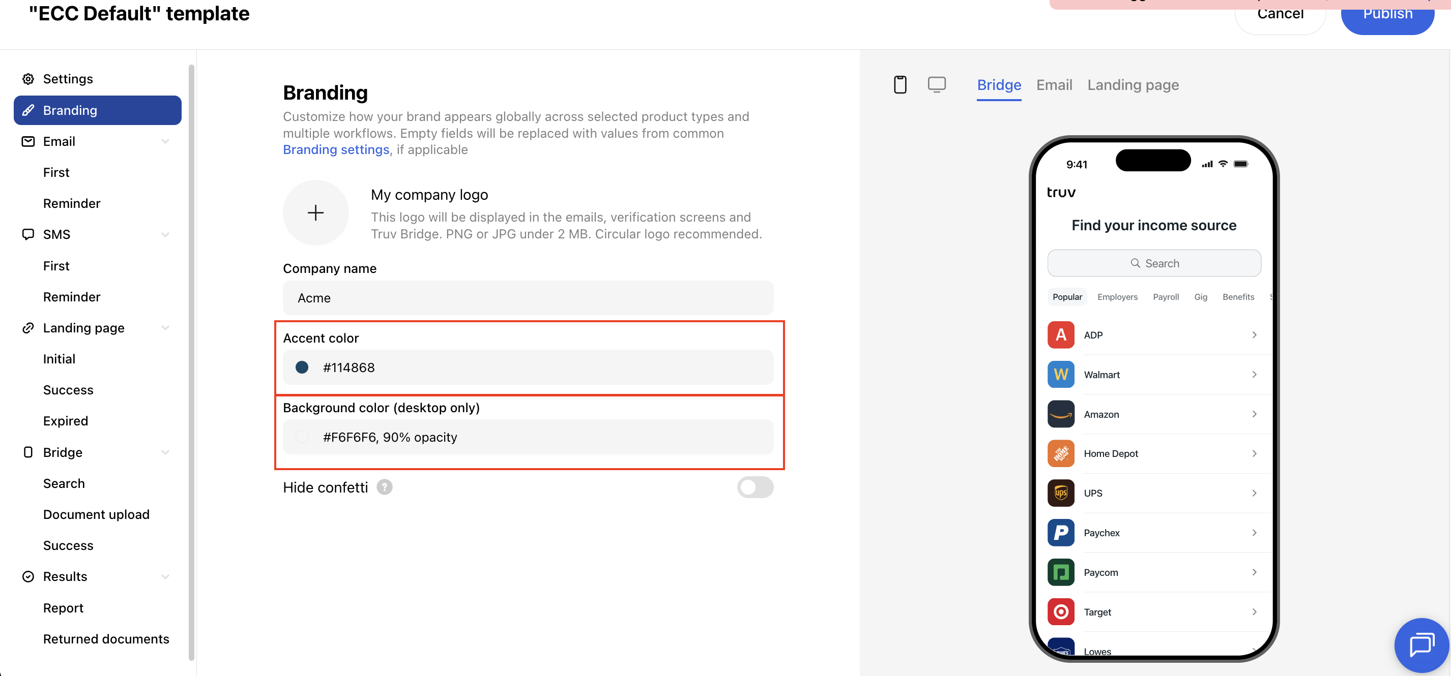 For the Truv Template ID that was added during service configuration in Step 2, we highly recommend adding the below configurations to ensure the Truv verification looks best.